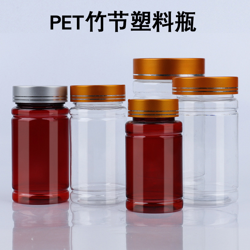 金銀蓋竹節瓶100ml 150ml 200ml 300 mlペットボトル広口粉末瓶透明カプセル瓶