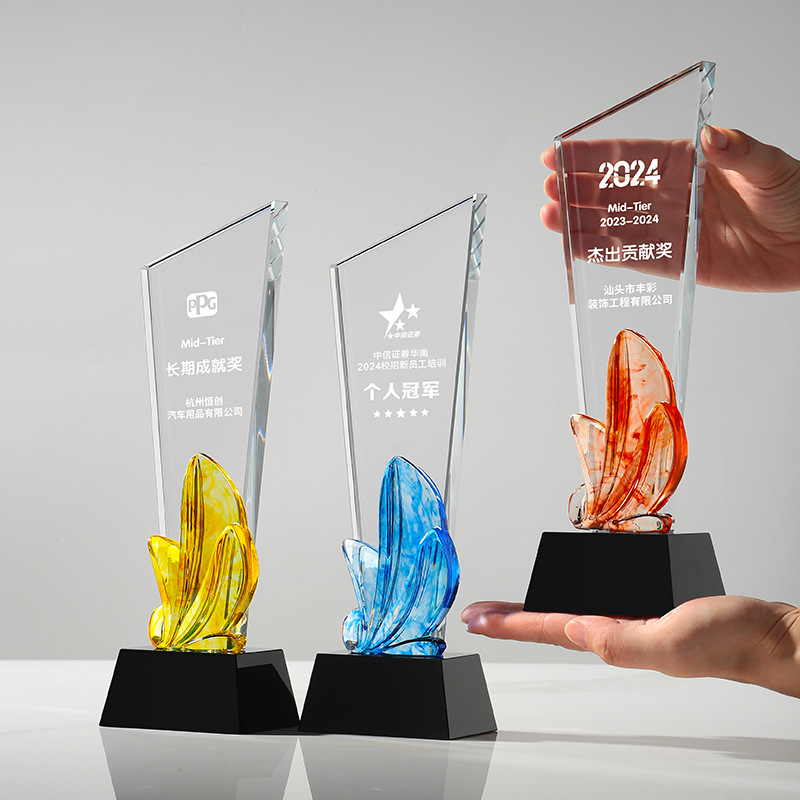 クリエイティブクリスタルトロフィーカスタマイズ会社年次総会名誉トロフィー賞メダル優秀社員賞記念カラフル