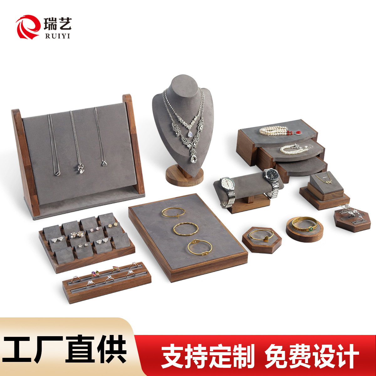 原木ジュエリートレイリング盤ネックレスペンダントブレスレット展示収納盤ベルベットアクセサリー盤道具12盤