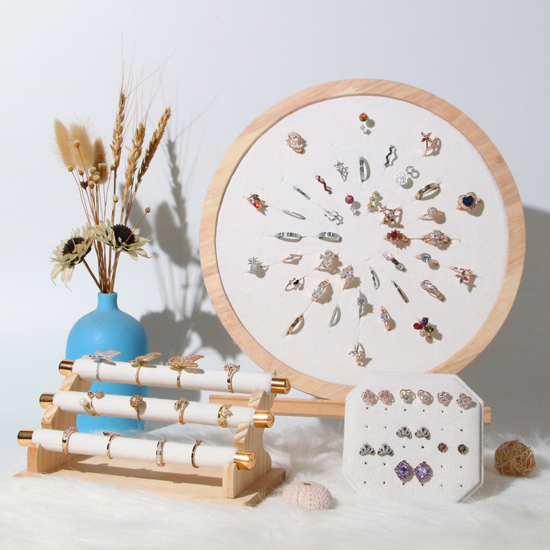 原木のアクセサリー棚は多くの展示棚の指輪のピアスのブレスレット棚のアクセサリーの宝石店を使って生放送して写真を撮ります。