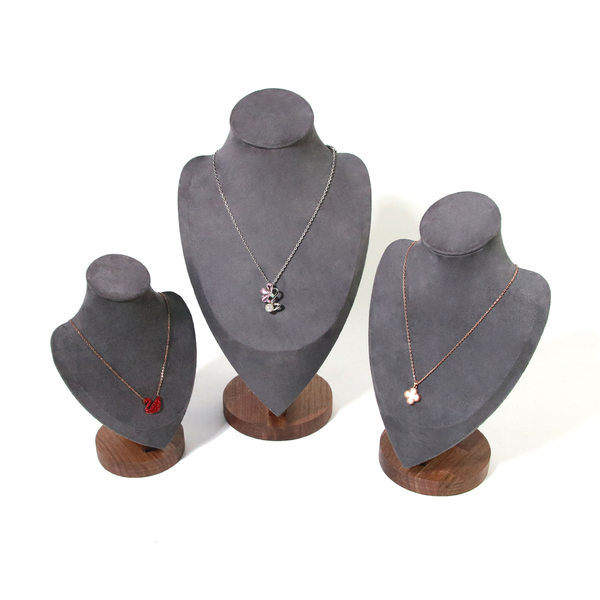 胡桃の木のネックレスの展示棚のペンダントのネックレスの棚のアクセサリーの棚の人は首のモデルの棚の宝石のカウンターの置物のようです。