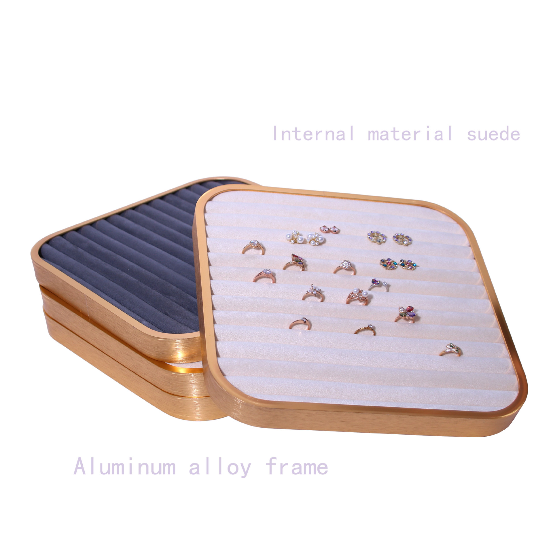 金属のアクセサリー盤の正方形のイヤリングの指輪のピアスの細いブレスレットの陳列のトレーのアクセサリーのジュエリーは収納板を展示します。