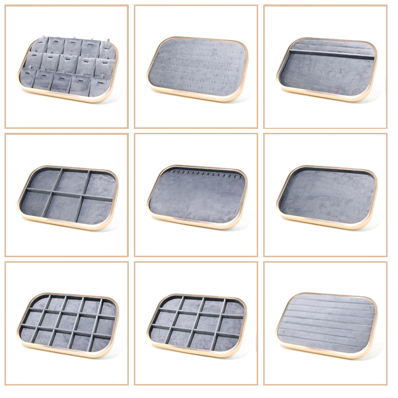 金属アクセサリー盤アルミニウム合金アクセサリー棚超繊維灰色色アクセサリー盤ヨーロッパ式ジュエリー展示陳列アクセサリー収