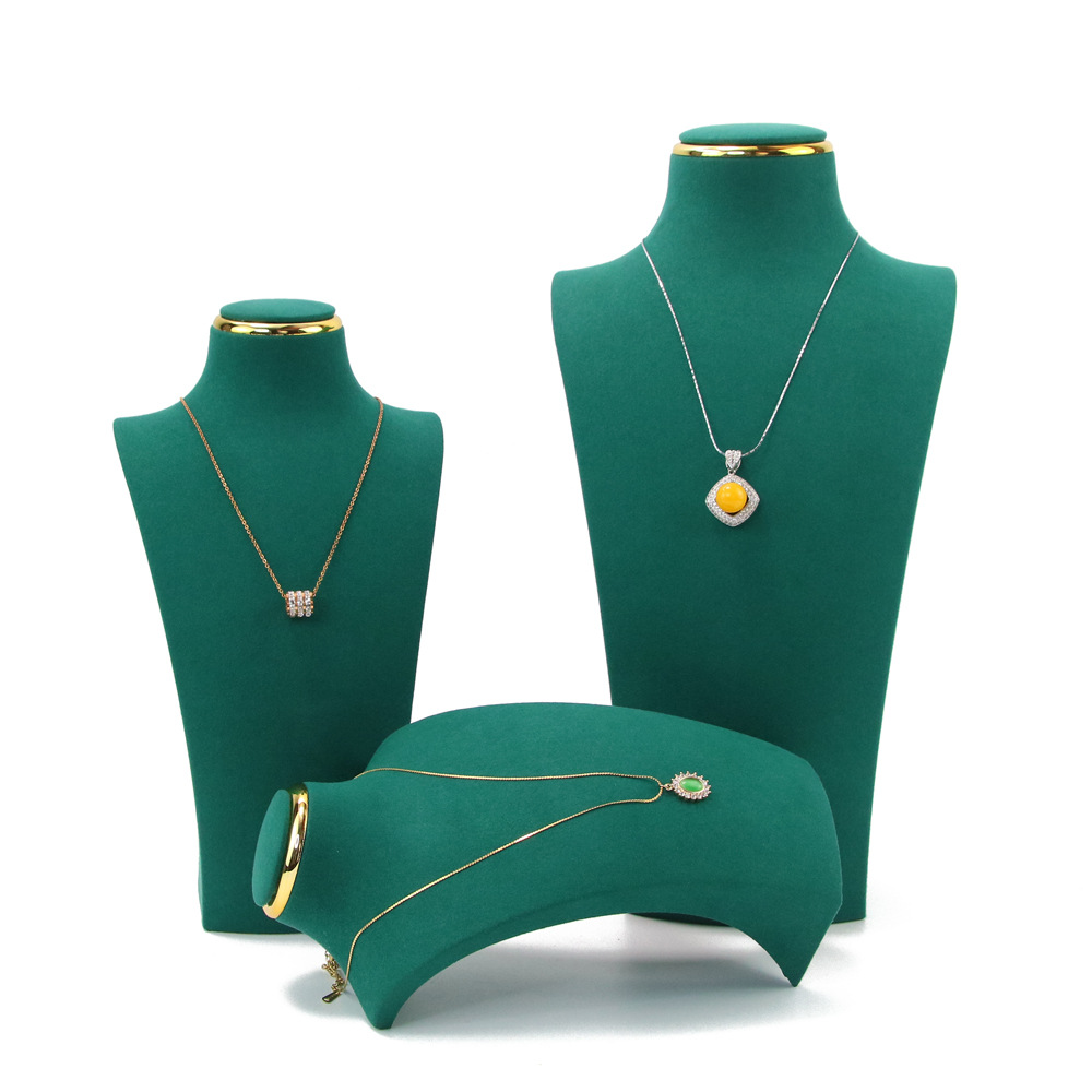 ペンダントネックレスの展示道具は首のモデルのアクセサリー棚のショーウインドーの収納棚のジュエリーの展示棚のようです。