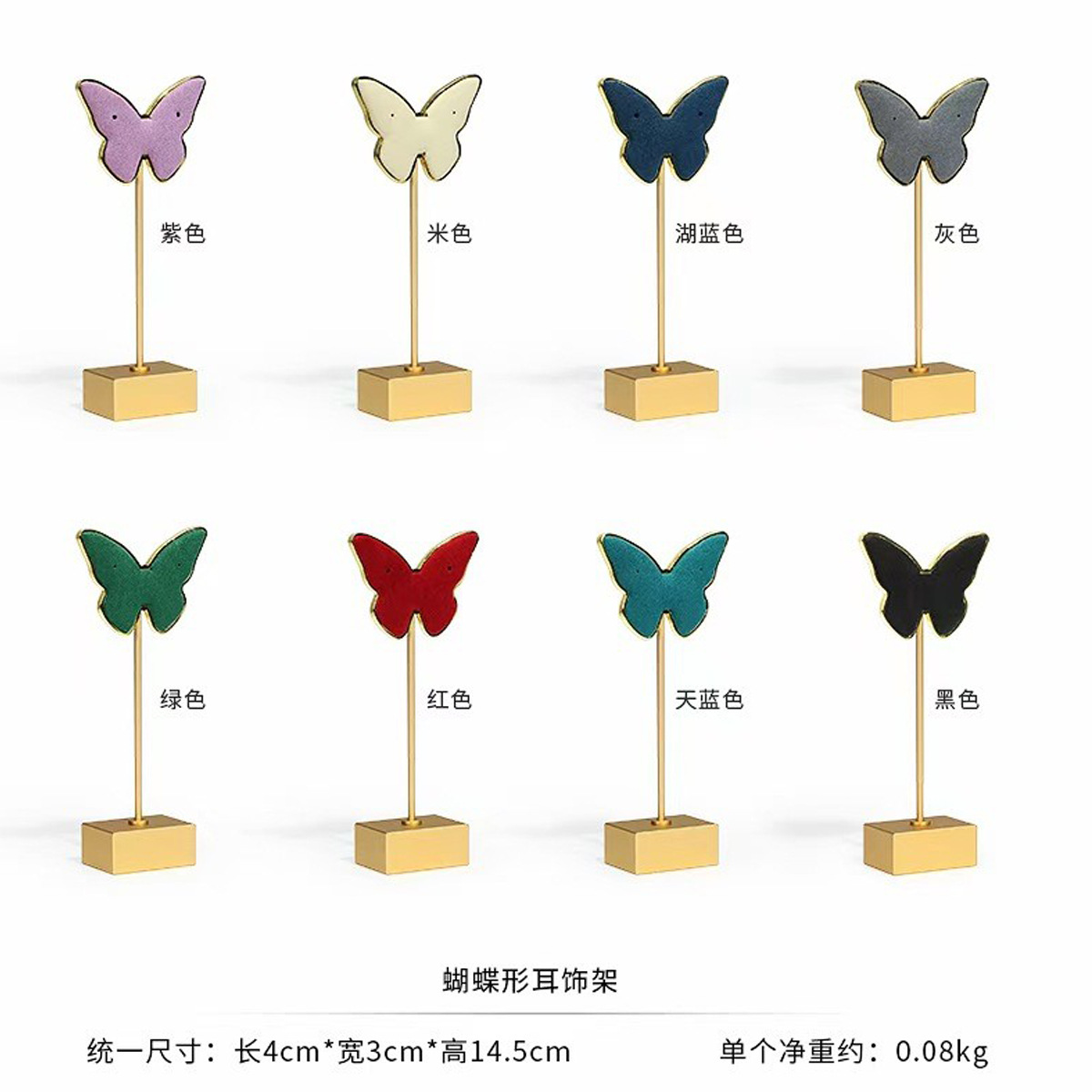 蝶のアクセサリーの金属のイヤリングのピアスの宝石店のショーウインドーの展示道具の小さい置物のネットの赤い装飾品は写真を撮ります。