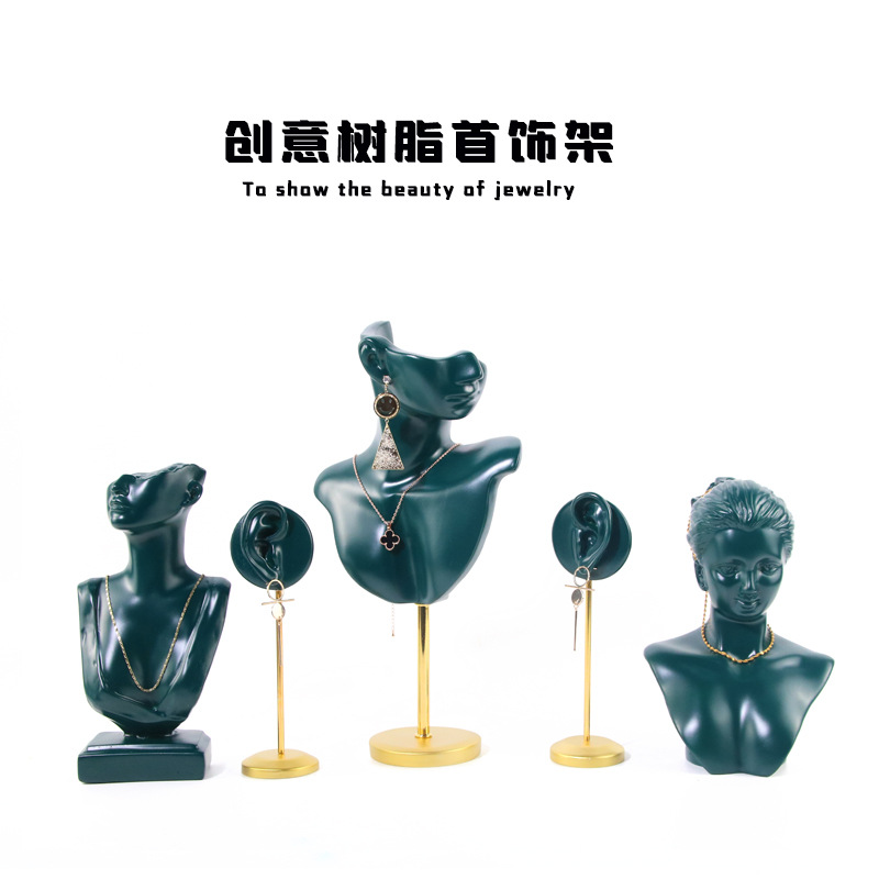 金属の底の樹脂の人は墨の緑色のアクセサリーの棚のピアスのイヤリングのネックレスの棚の直播間のモデルハウスの展示の道具に似ています。
