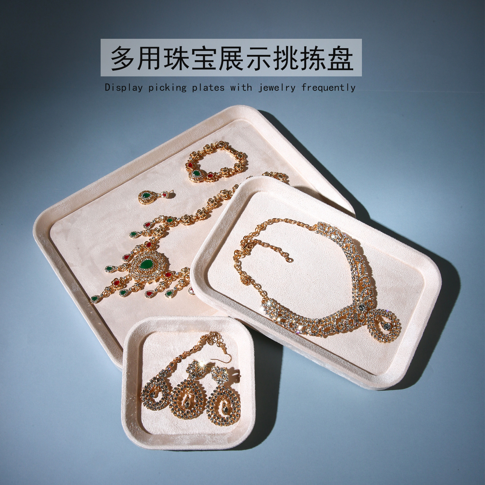 精品アクセサリー盤グリーン超繊維絨毛布ピッキング盤指輪トレー宝石店展示盤pu皮革アクセサリー盤