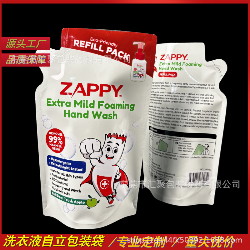 特殊形状自立偽口洗濯洗剤包装袋、破れ口付きスタンディング複合袋、日用化学品交換用液体袋
