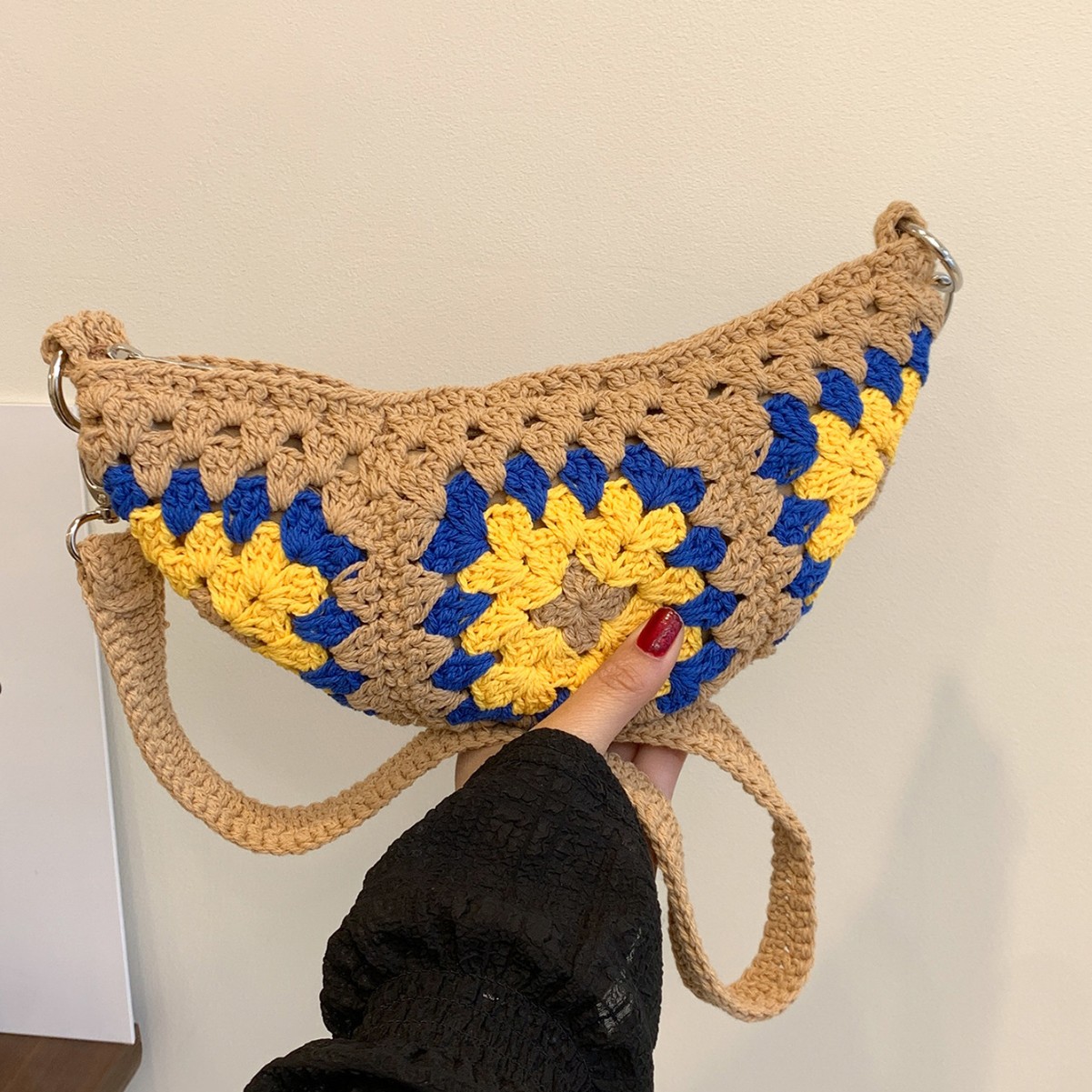 ボヘミアン民族風バッグ女性2025新型かぎ針編みバッグ海辺休暇シングル肩斜めショルダーバッグ