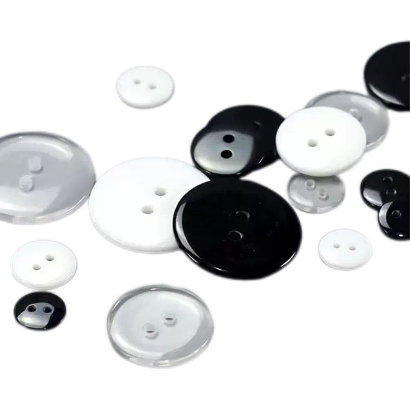 透明樹脂製パンボタン(2つ穴)、黒白パンボタン(4つ穴)、ファー襟専用小ボタンの卸売販売