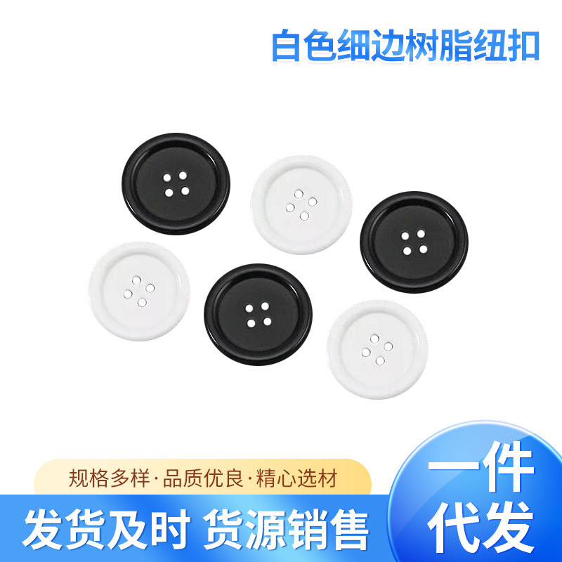现货速发黑白细边四眼树脂纽扣女士西服衬衣风衣大衣钮扣