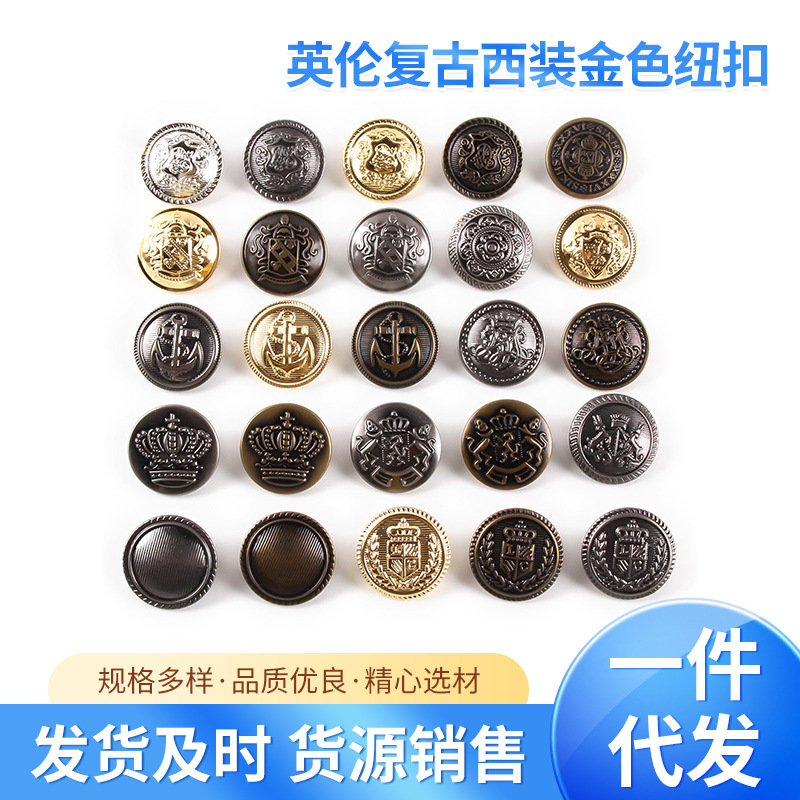 英倫復古スーツ金色ボタン青銅色制服双獅子金属船錨毛コート制服ボタン