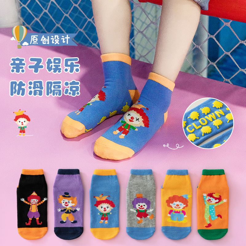 滑り止めの靴下の漫画の道化師の赤ちゃんの床の靴下の子供の靴下の早教の靴下のカバーのゴムの靴下のヨガの子供のトランポリンの靴下