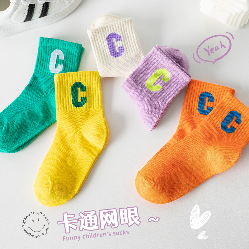 子供の靴下の大きい男の子の夏の靴下の薄いタイプのメッシュinsの潮のアルファベットcの通気性のファッションの中で靴下の卸売り