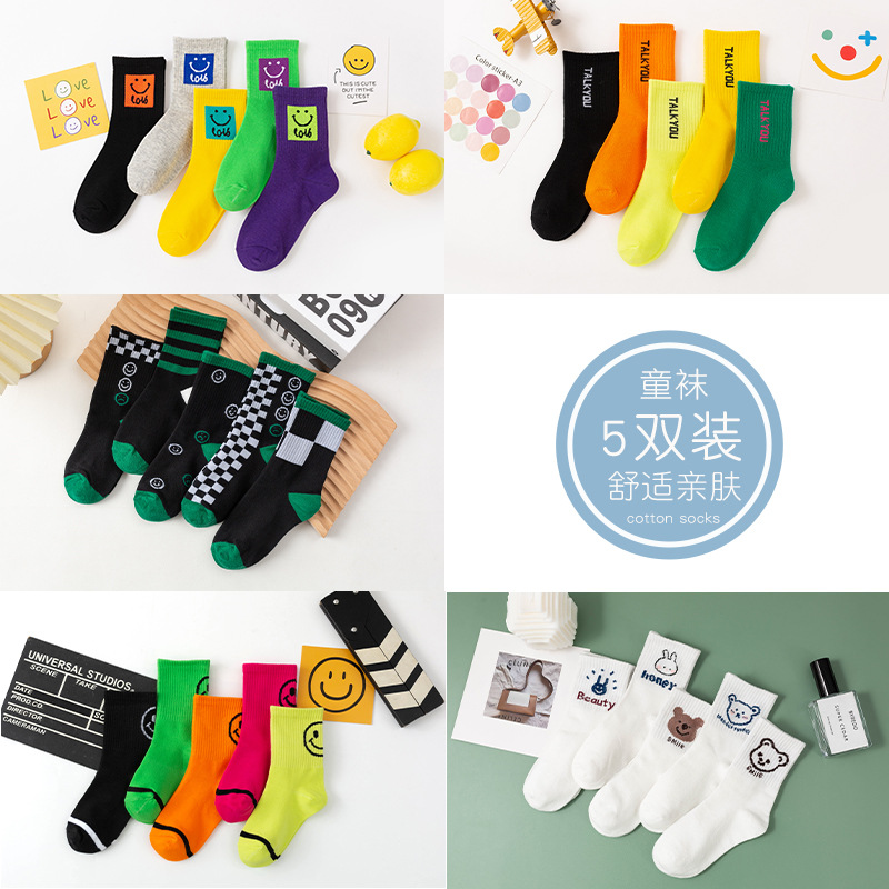 【工場直売】子供用靴下男の子女の子春と秋の個性的なファッション靴下ins韓国ファッション中筒綿靴下