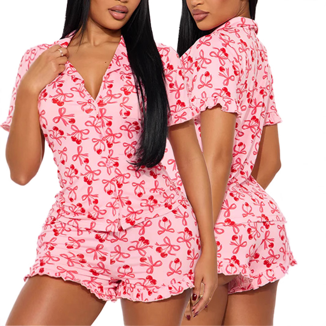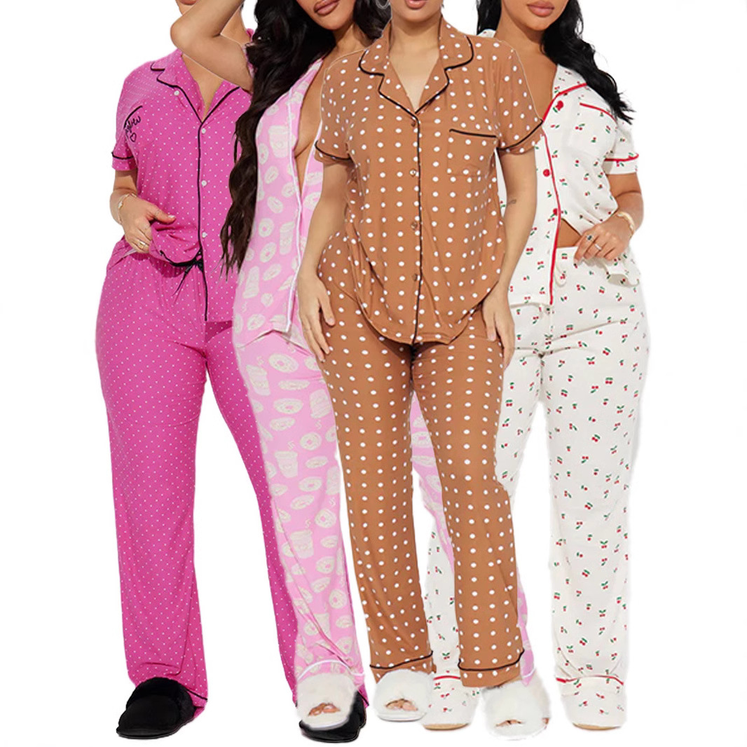 クロスボーダーヨーロッパサイズ 2025 ホームコンフォートプリント女性のフロントラペル半袖ズボンスーツモーダル
