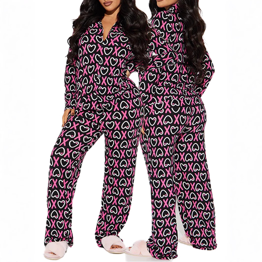 欧米の国境を越えたアマゾン2025春の女装カジュアルプリント家庭の長袖ズボンのシングルスーツのモーデール