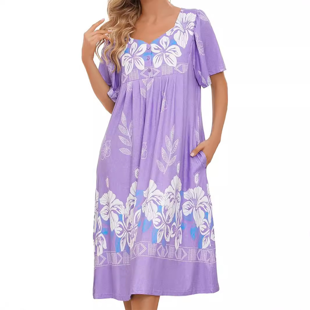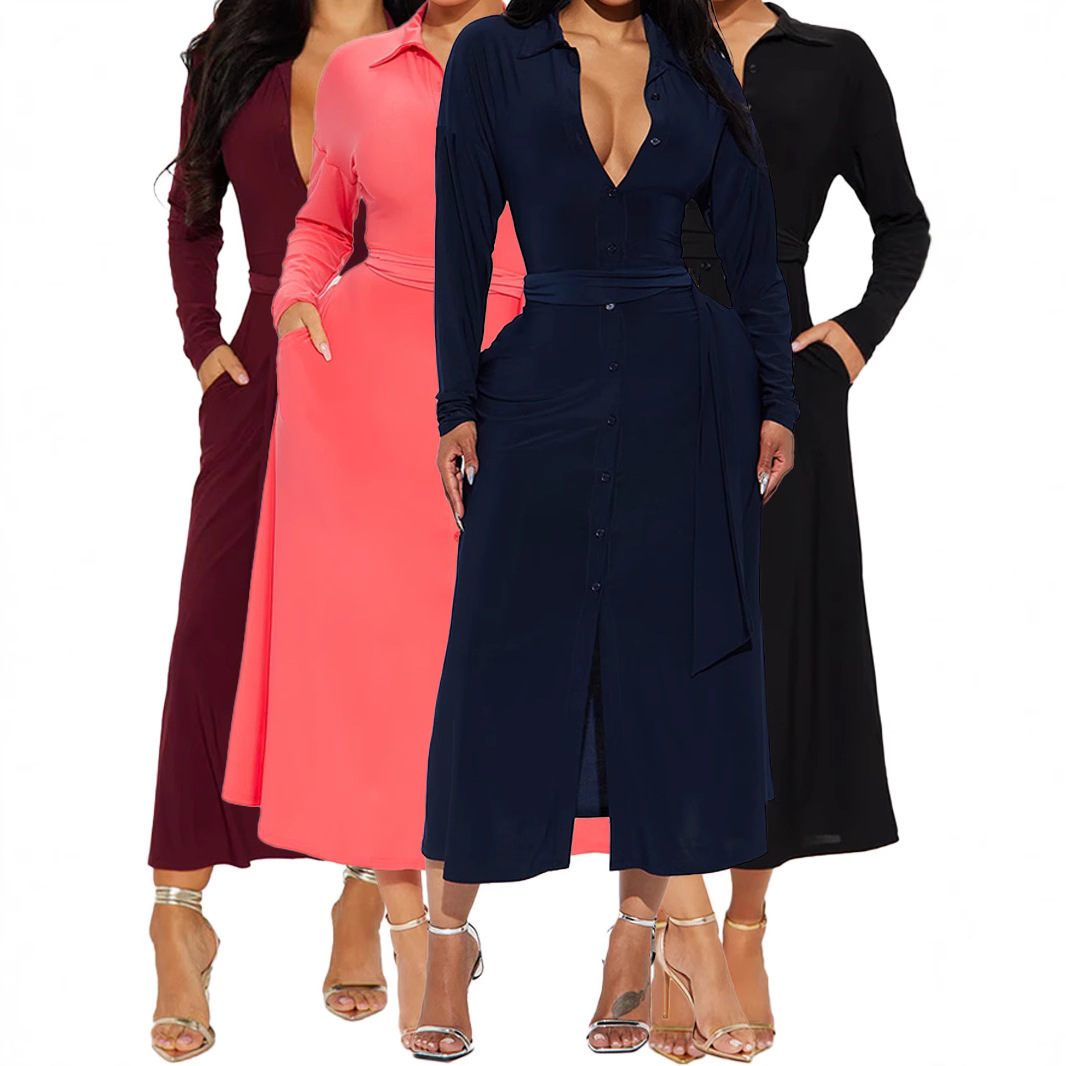 欧米のアマゾンは国境を越えて2024秋の女性の快適な家庭にポケット付きの前ボタンの中のスカートのワンピースを持っています。