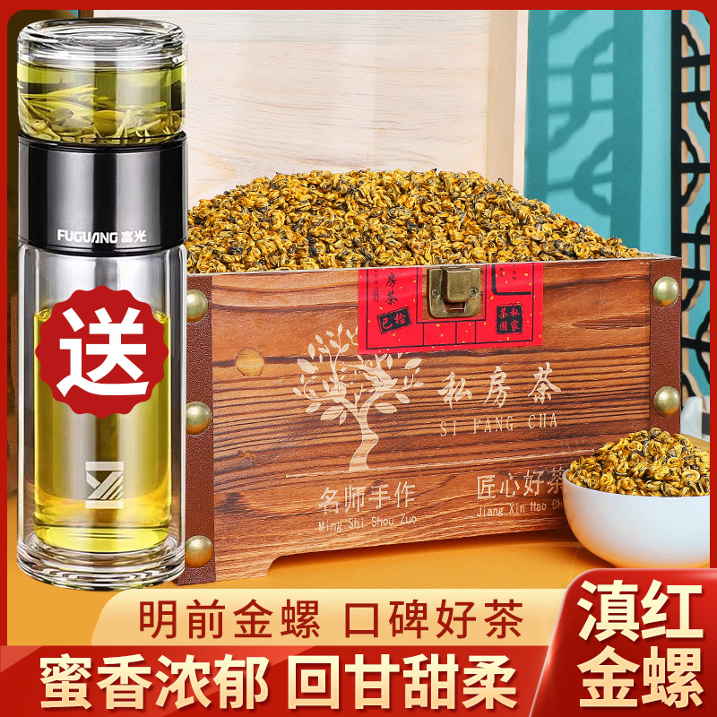 2023新茶雲南鳳慶楚紅茶特級単芽古樹茶葉金螺金芽ばら積礼箱500g