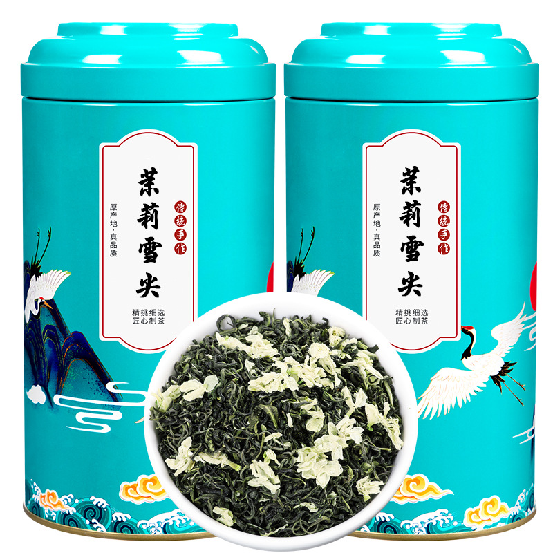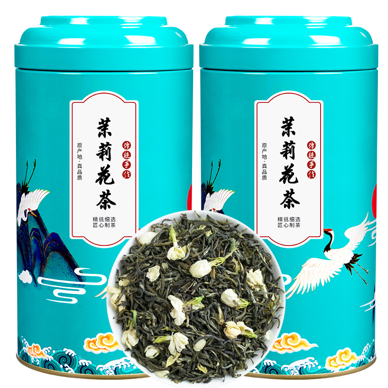 源産地新茶ジャスミン茶特級福州ジャスミン毛先大白豪緑茶葉バラ缶500グラム