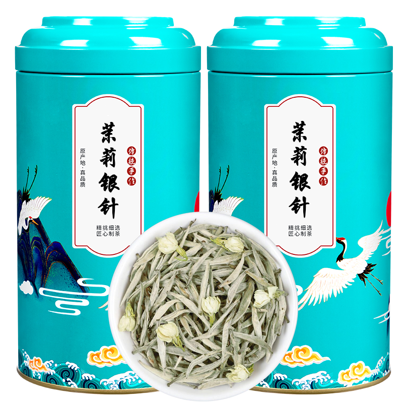 源直売広西横県ジャスミン茶葉特級白ミリ銀針王緑茶濃香散缶500グラム