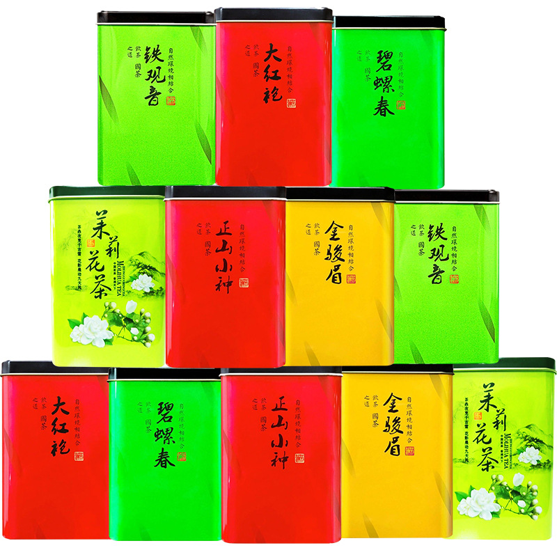 6大茗茶セット12缶合計1200g金駿眉鉄観音緑茶ジャスミン茶小種紅茶大紅衣