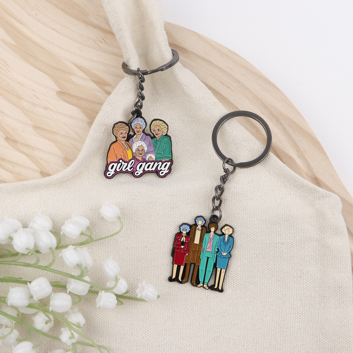アニメのカピバラのキーは学生のキャンパスの事務証明書の生花を掛けて布芸のキーを編みます。