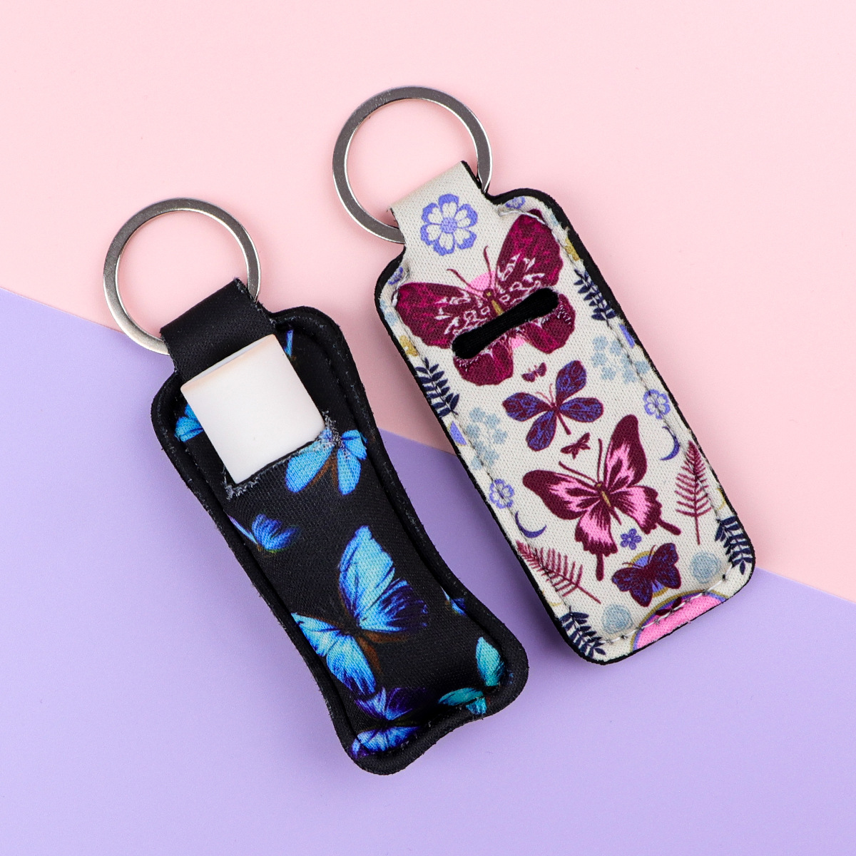 漫画の蝶の口紅の保護カバーの鍵は唇の膏のカバーの鍵を掛けます。