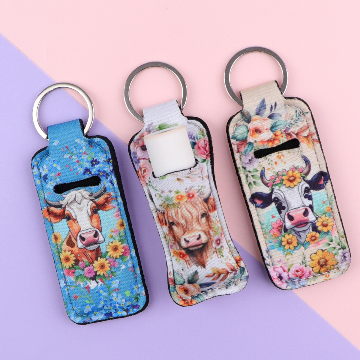 アニメ動物は牛の唇の膏のセットのキーホルダーの口紅の保護カバーのキーホルダーの掛け飾りの布芸のキーホルダーの部品を使います。