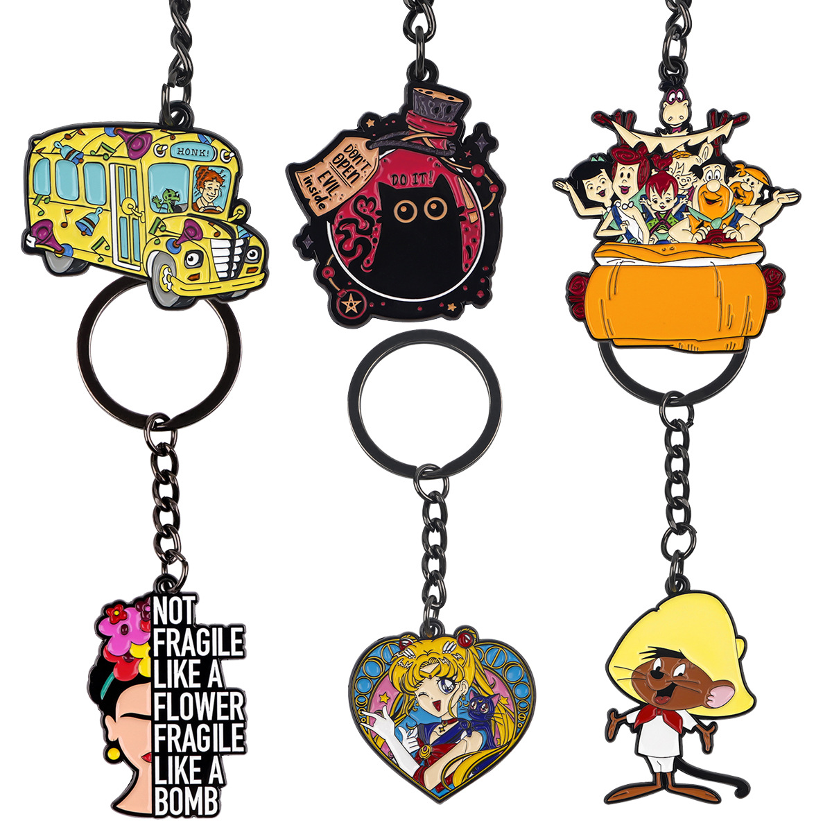 合金キーホルダーペンダント黒猫フクロウの口キーホルダー車のキーホルダーチェーンロープ革金属ペンダントアクセサリー