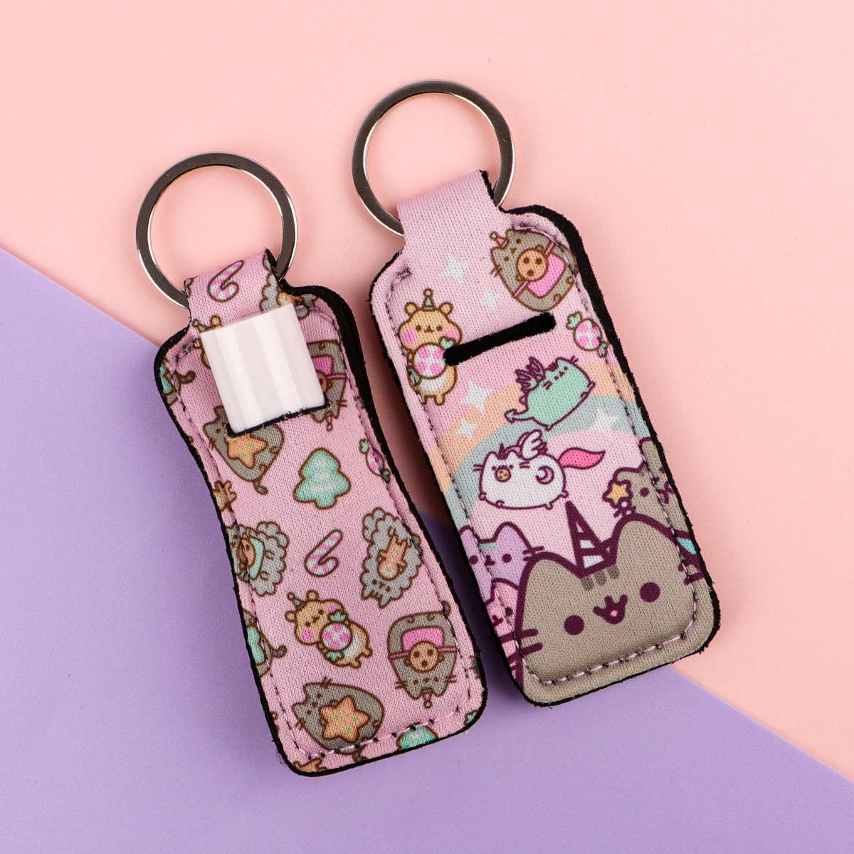 漫画の猫の唇の膏のセットのキーホルダーのつり縄の口紅の保護カバーのキーホルダーの証明書のペンダントのキーホルダーの部品