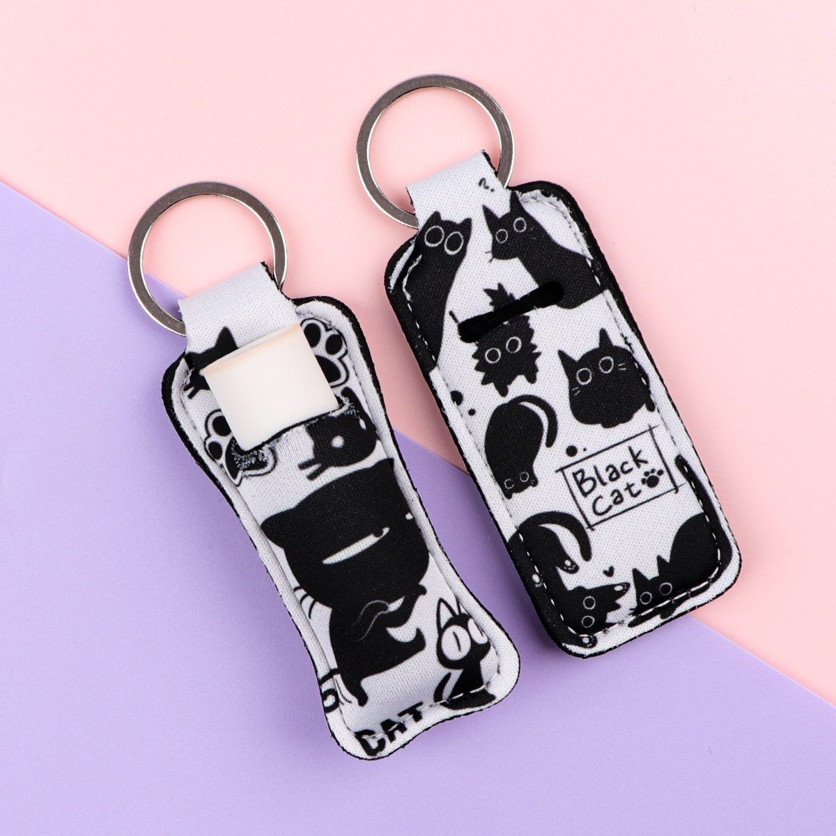 漫画動物猫口紅カバーキーホルダー口紅保護カバーキーホルダーペンダント織物アートキーホルダーアクセサリー