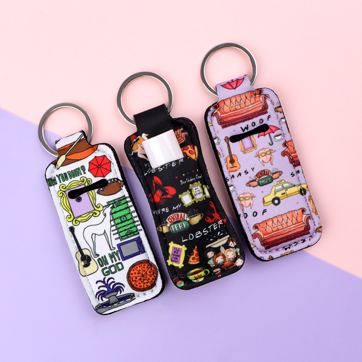 彩虹口红套钥匙扣口红套潜水料钥匙扣口红套多色女士配饰钥匙扣