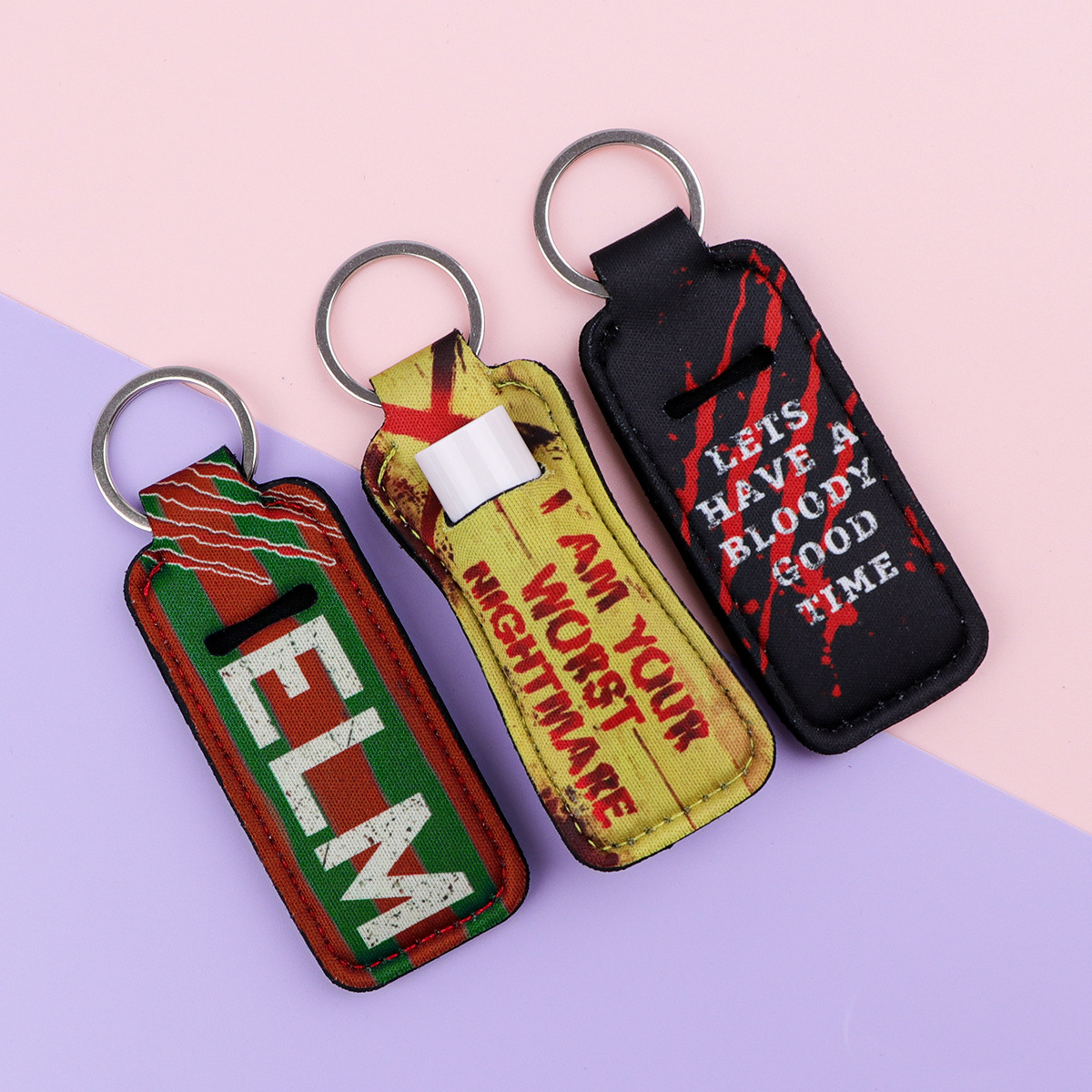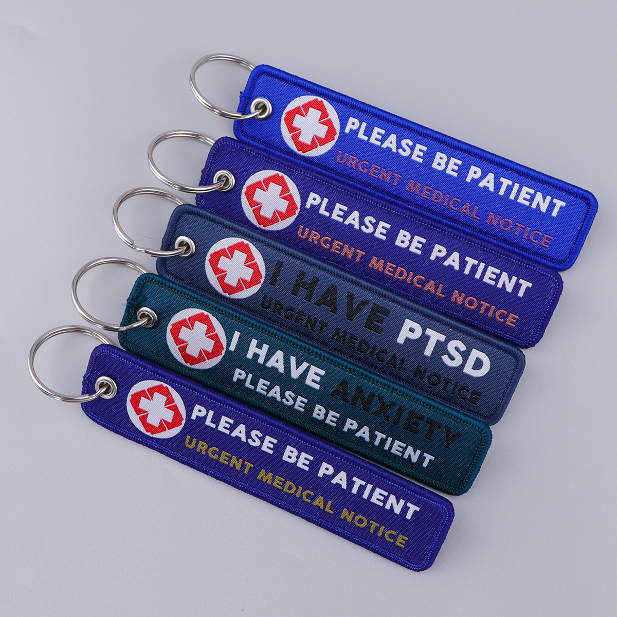 新商品の語録織荷のキーホルダーにロープを掛けて警告語の英語の文字の学生の証明書を掛けて布芸のキーホルダーを編みます。