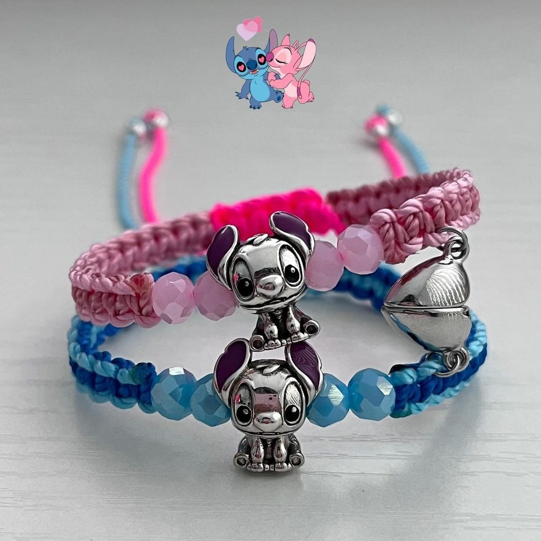 国境を越えたアニメビーズのスティッチが手綱アニメを編んでいるかわいいマグネットペアのカップルのペアブレスレット