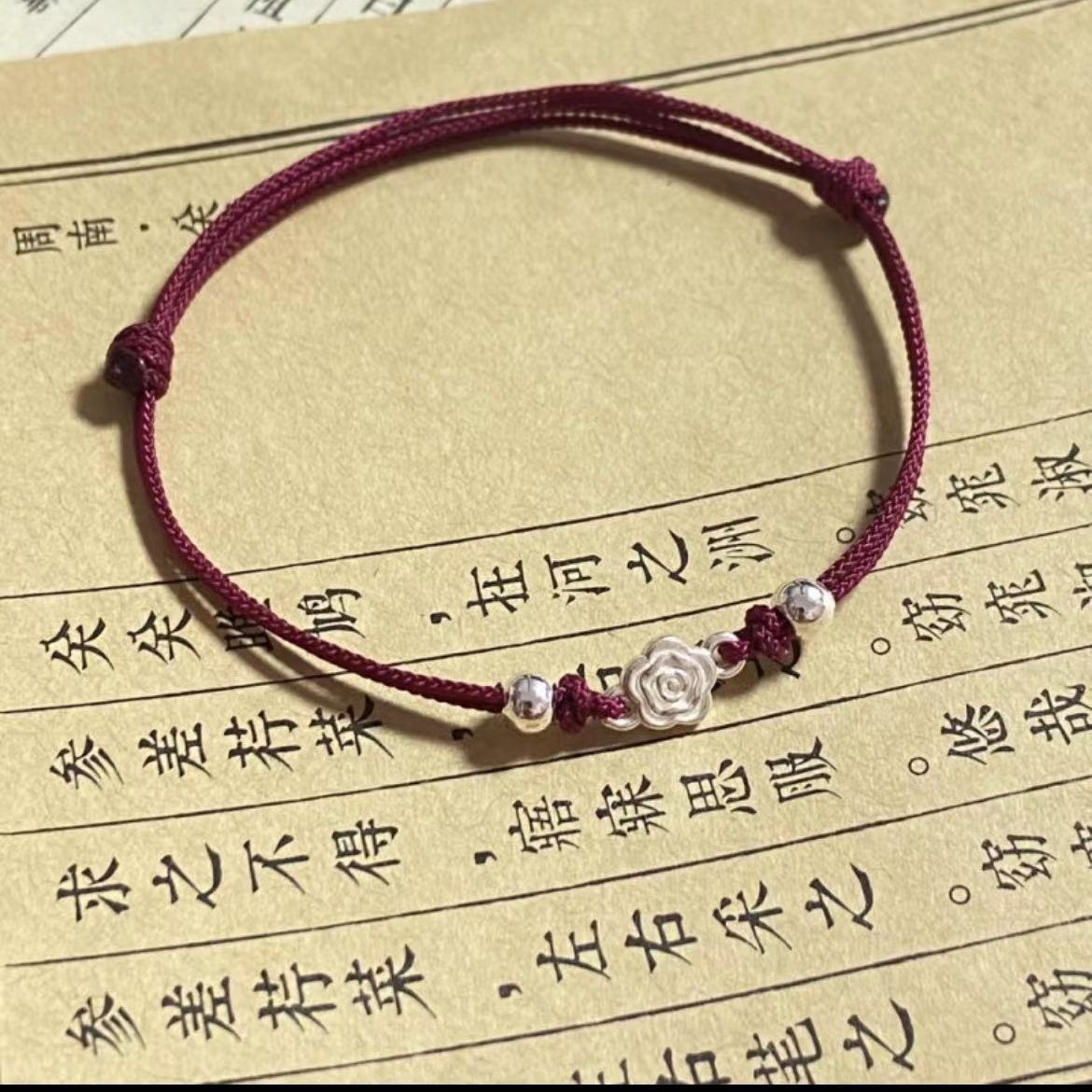 新中国式のツバキの花の両面の平安の喜びの手の縄は編みますシンプルな組み合わせの手の縄のアクセサリ
