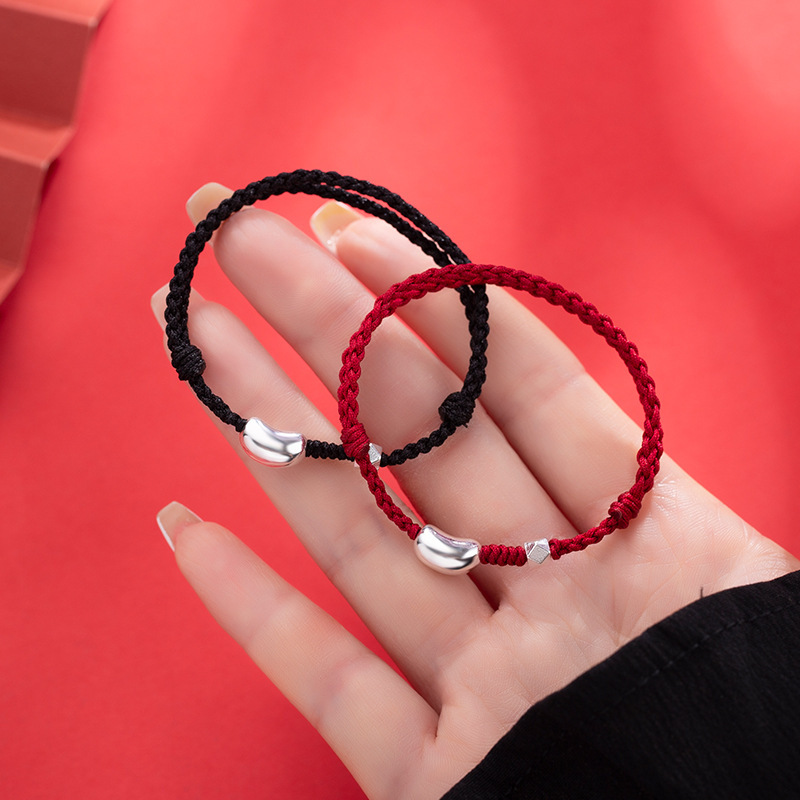 アカシアの豆のカップルのブレスレットのペアのあずきのバレンタインデーの贈り物の手作りの編み物の本命の年の赤い縄の男女