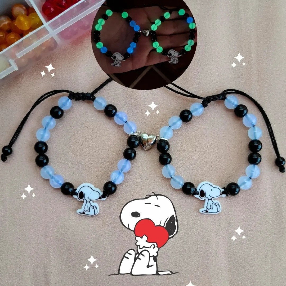 かわいい漫画発光かわいいスヌーピーブレスレット黒と白のビーズ手織り愛磁気ブレスレット
