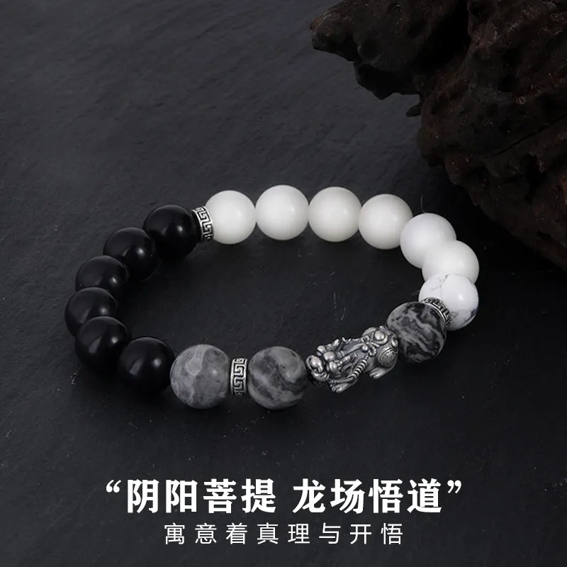 チベットシルバー八方来財貔貅菩提ブレスレット国民的トレンド新中国風横暴なカップルブレスレットレトロブレスレット