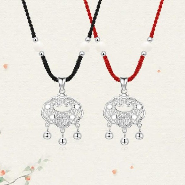 新しい中国式の平安鎖のネックレスの女性の手で縄の福の字の鈴を編みます。
