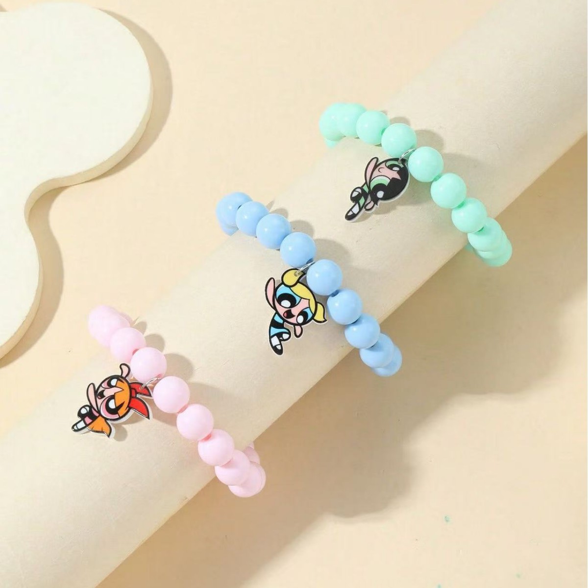 国境を越えた空飛ぶ女性警察官ドーパミンカラー漫画かわいいクリエイティブビーズブレスレット楽しい子供用ブレスレット 3 点セット