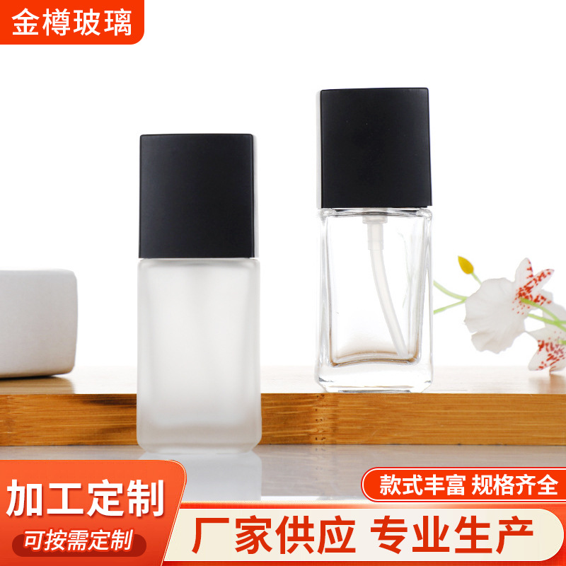 30ml角型ローションボトルガラス空ボトルスキンケア分注ボトル乳液サンプルボトルbbクリームアイソレーションボトル