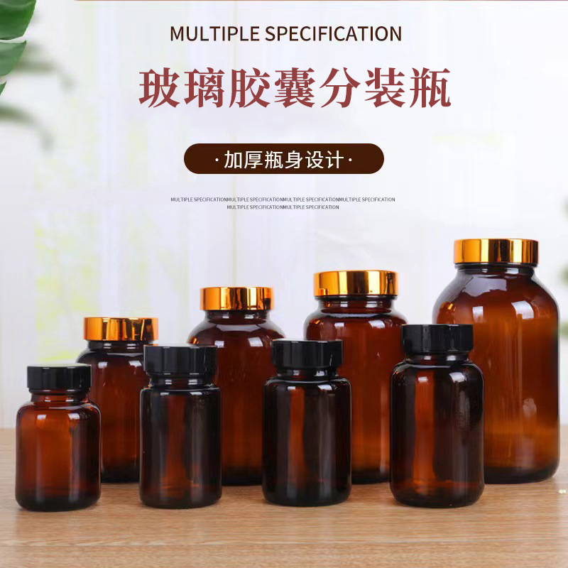 卸売りガラス医療用カプセル瓶虫草瓶剤粉末薬瓶茶色保健品瓶蓋付き密封分注瓶
