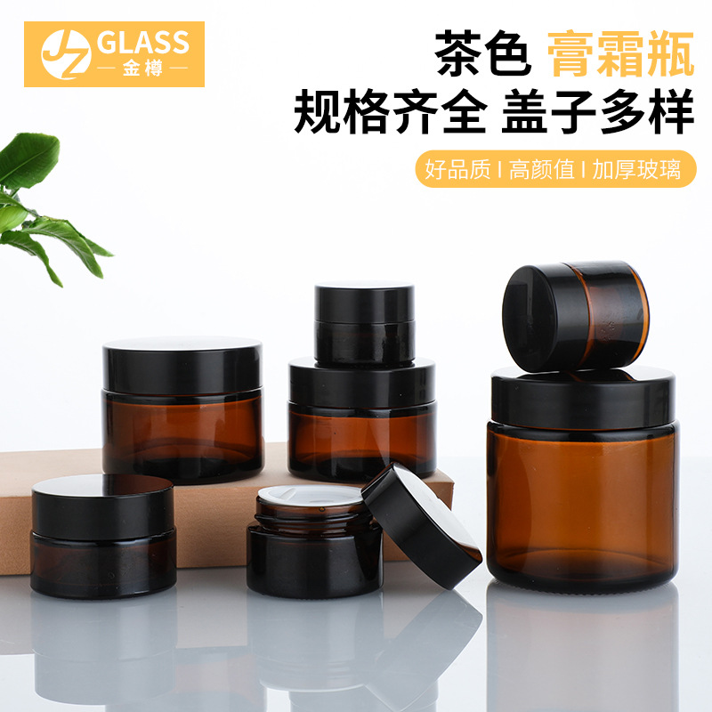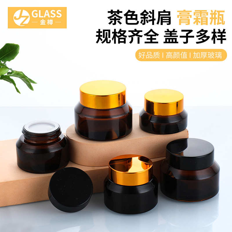 茶色のクリーム瓶ガラスクリーム空瓶遮光化粧品分注瓶密封ガラス瓶マスク瓶小サンプル瓶