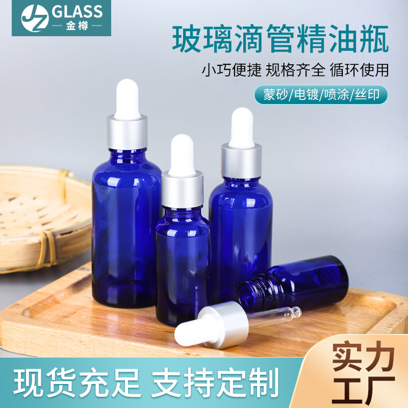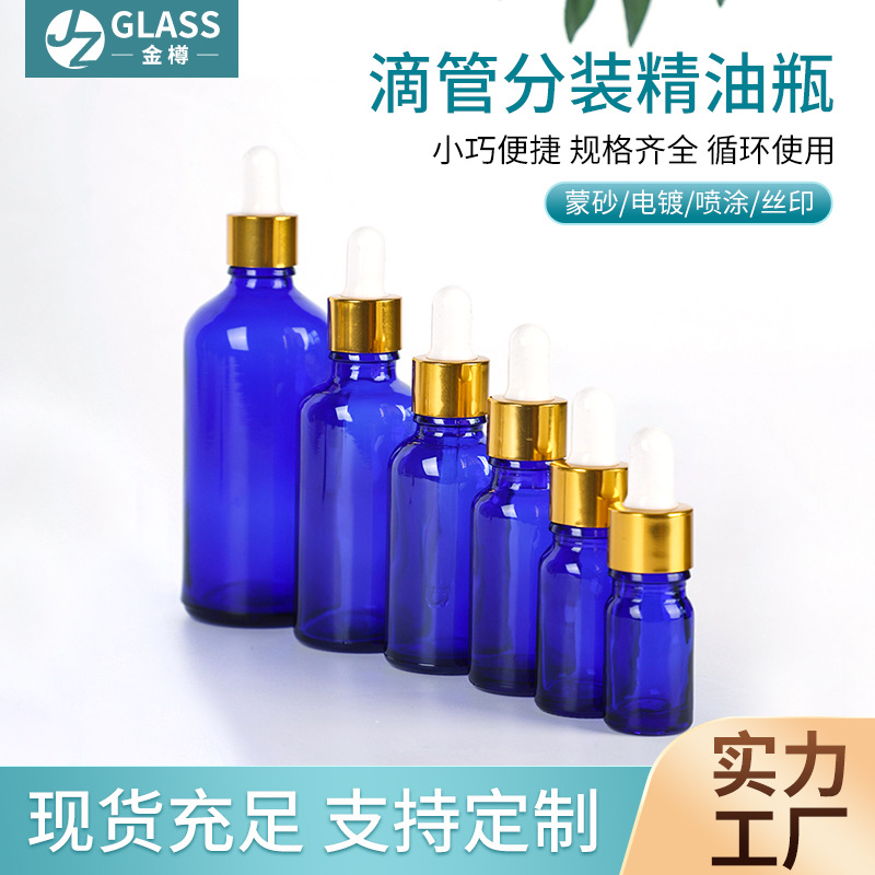 青いガラスエッセンシャルオイルボトル配合空ボトルスポイト分注小サンプルボトル5-100ml空ボトル化粧品分注ボトル