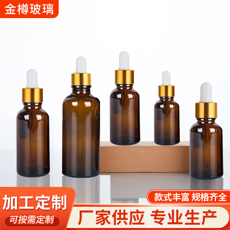茶色のスポイトエッセンシャルオイルボトル避光ガラスエッセンシャルスキンケア製品分注ボトル化粧品液体サンプル空ボトルカスタム