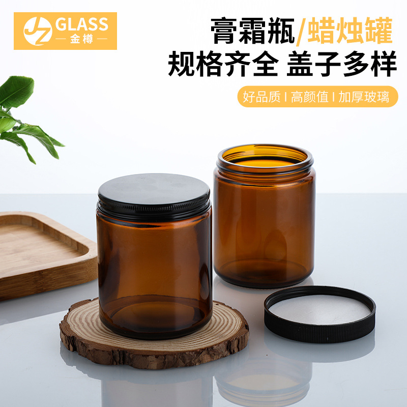 卸売りガラスクリーム瓶大口ろうそくグラス香薫ろうそく缶空瓶茶色蓋付きガラスクリーム瓶