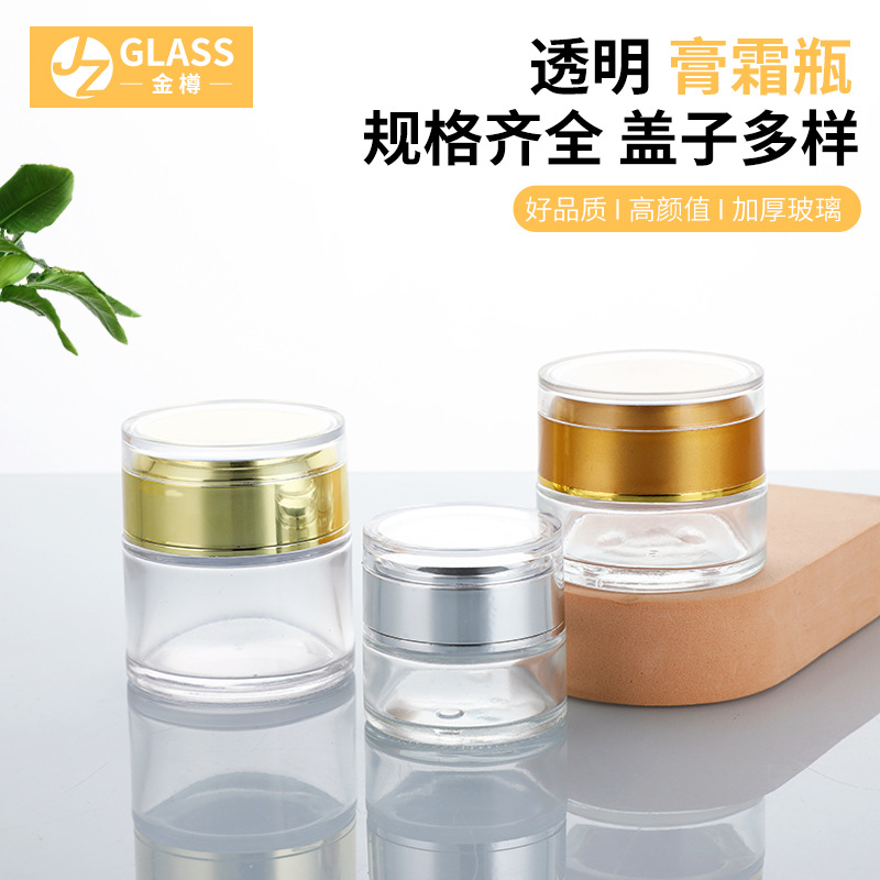 化粧品分注瓶ガラスの空き瓶のクリーム瓶は目のクリーム瓶に入れて透明なガラスのクリーム瓶を供給します。