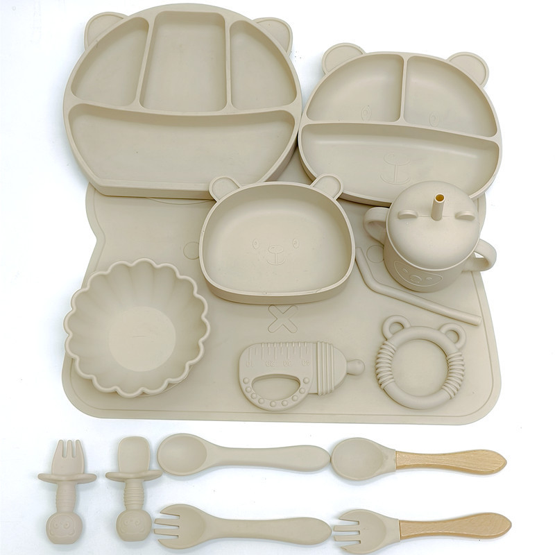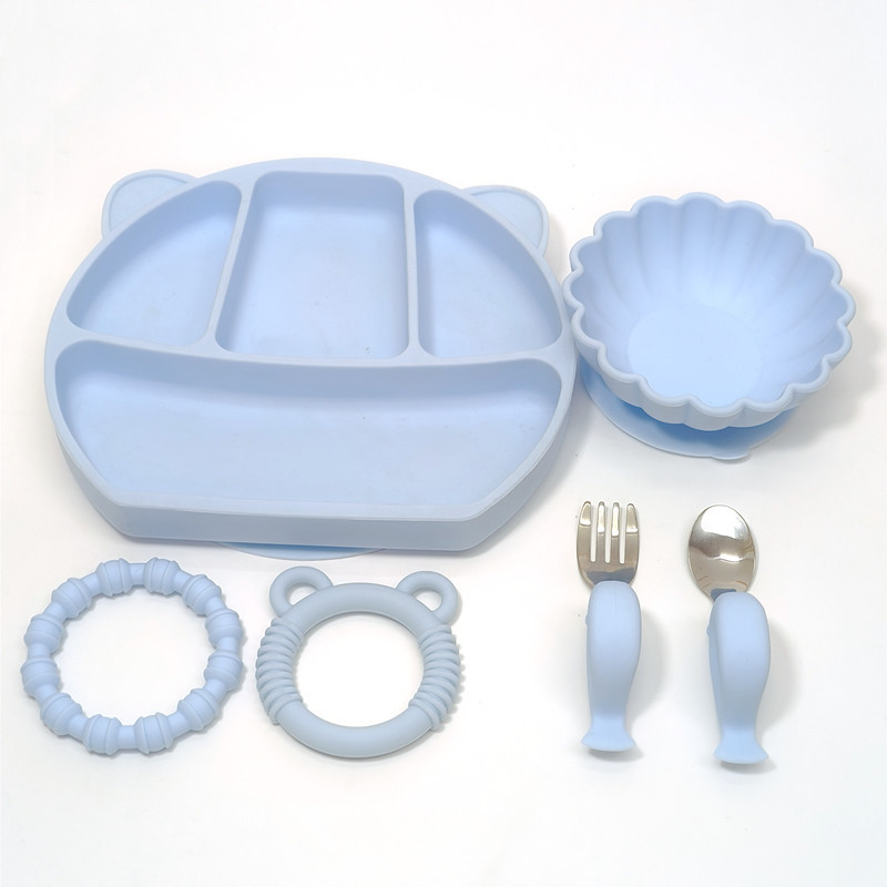 子供の食器のシリカゲルの赤ちゃんは食事をします。