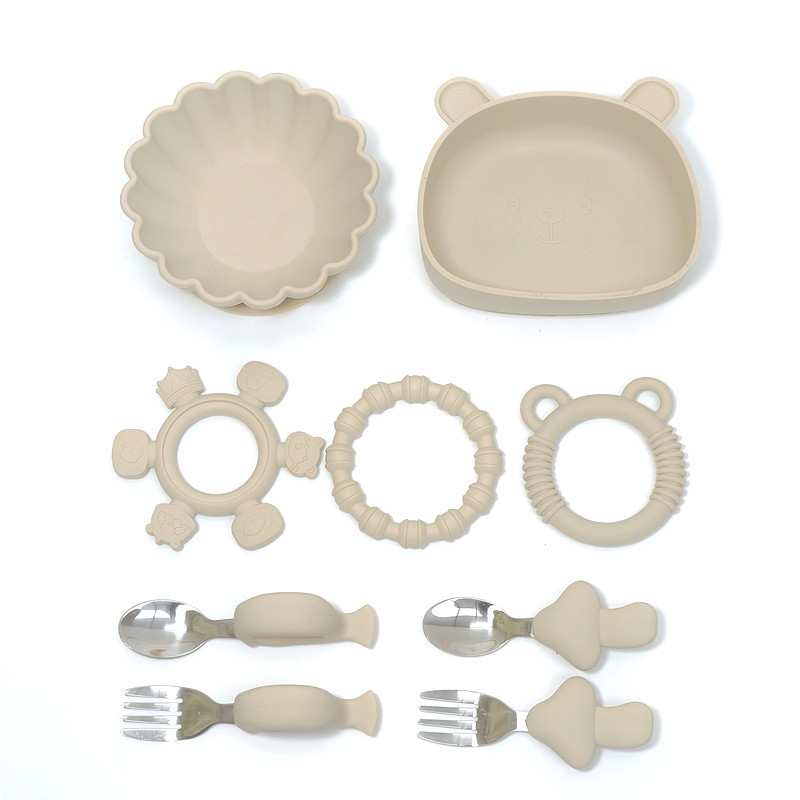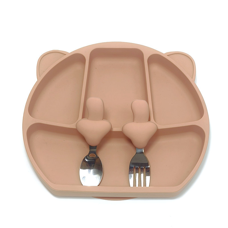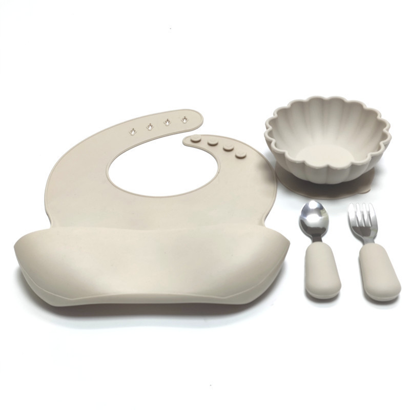 シリカゲルボウル食品級赤ちゃん補助ボウル転倒防止ゴム耐高温防止ボウルスプーンフォーク外出食器セット